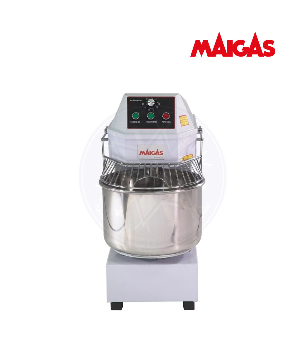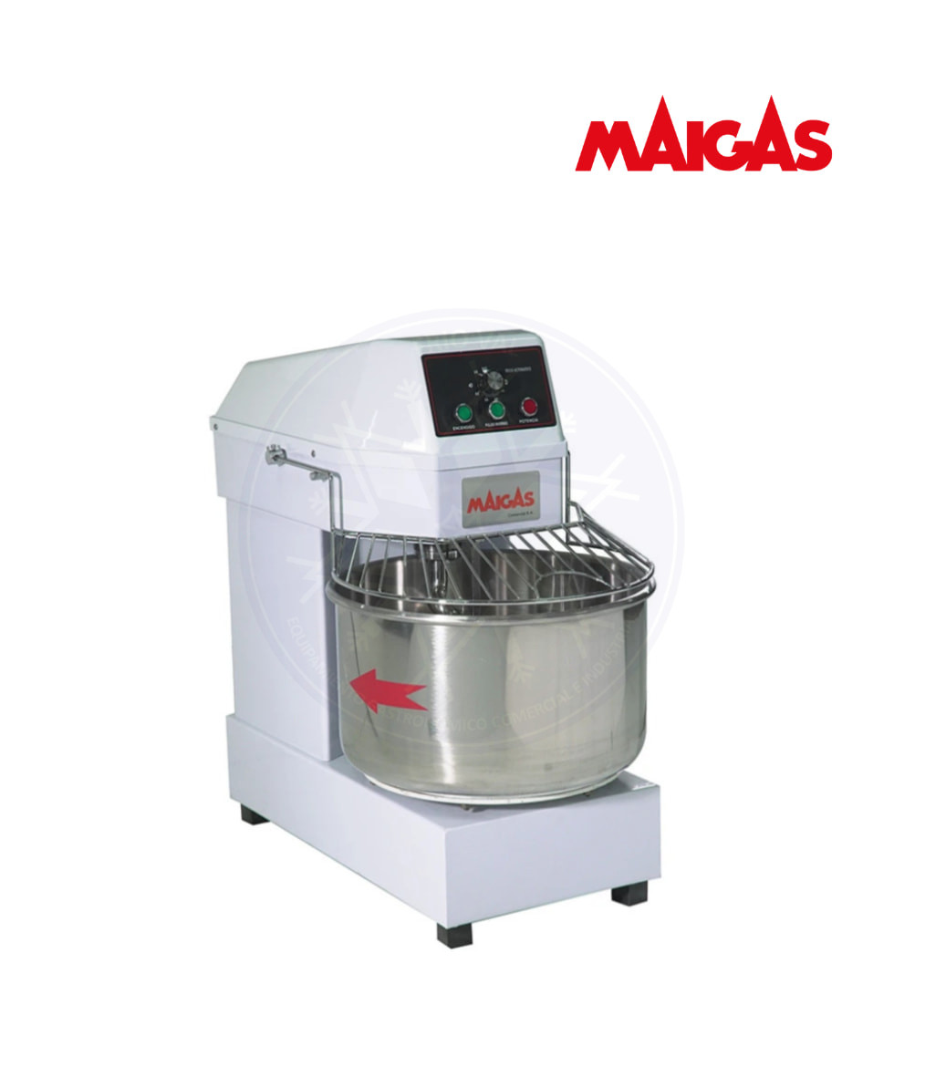 Amasadora industrial para 22kg de masa. Ideal para comenzar tu emprendimiento o para reforzar tus líneas de amasado. Su bowl es de acero inoxidable reforzado el cual incluye una rejilla de protección, también confeccionada en acero, de fácil mantención y limpieza. Perfecta para ahorrar tiempo y esfuerzo obteniendo mezclas más homogéneas.