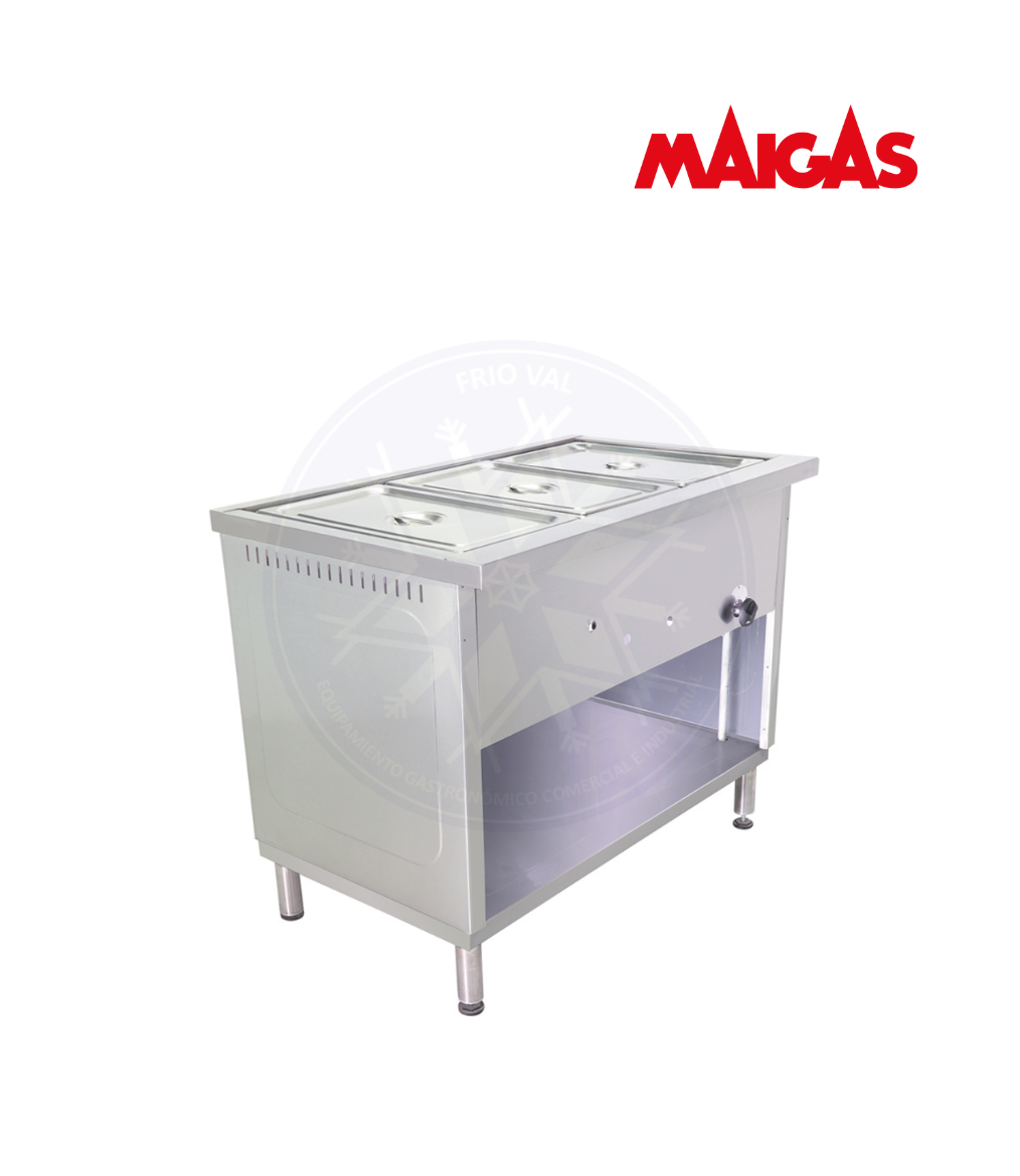 Módulo baño maría construido íntegramente en acero inoxidable, posee 3 depósitos GN 1/1 (20 LTS. C/U) con quemadores tubulares comandados por una llave de 3 posiciones con dispositivo de seguridad. Puede ser utilizado en cocinas, restaurantes y casinos ya que en ellos se potencia su función de calentar los alimentos a vapor de manera suave, uniforme y constante.