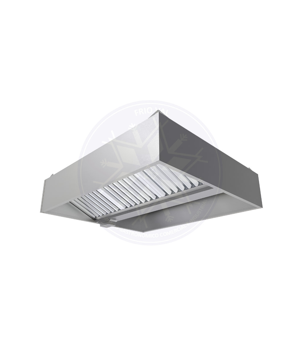 Campana construida en acero inoxidable que otorga una extracción potente en tu cocina, manteniendo el aire fresco y saludable en todo momento, al poder eliminar de manera eficiente humo, vapores y olores propios de las preparaciones. Esta campana se vuelve imprescindible para restaurantes, cocinerías, casinos, locales de comida rápida, y cualquier comercio en general.