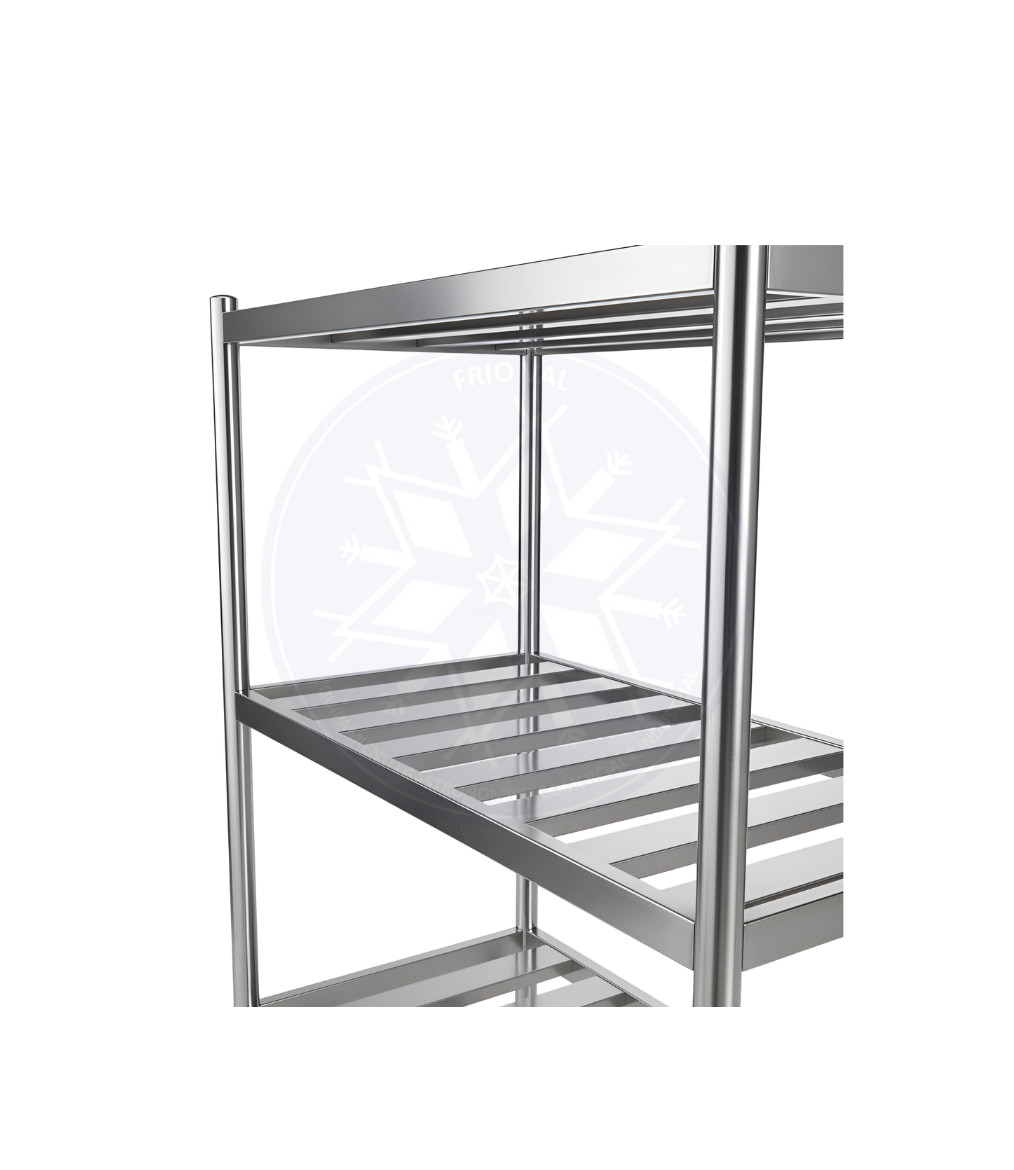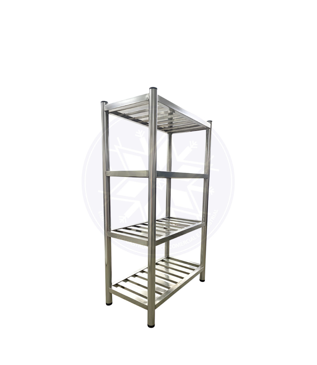 Estantería que, por su sistema, proporciona un fácil montaje sin el uso de herramientas especiales. Combina estética, durabilidad y resistencia. Su diseño permite el incremento en la circulación de aire, como también el espacio necesario para que pueda escurrir el agua de accesorios o útiles después del lavado. Posee una estructura firme, y a la vez liviana, que le permiten organizar sus utensilios y productos en cualquier lugar, incluso dentro de cámaras de frío.