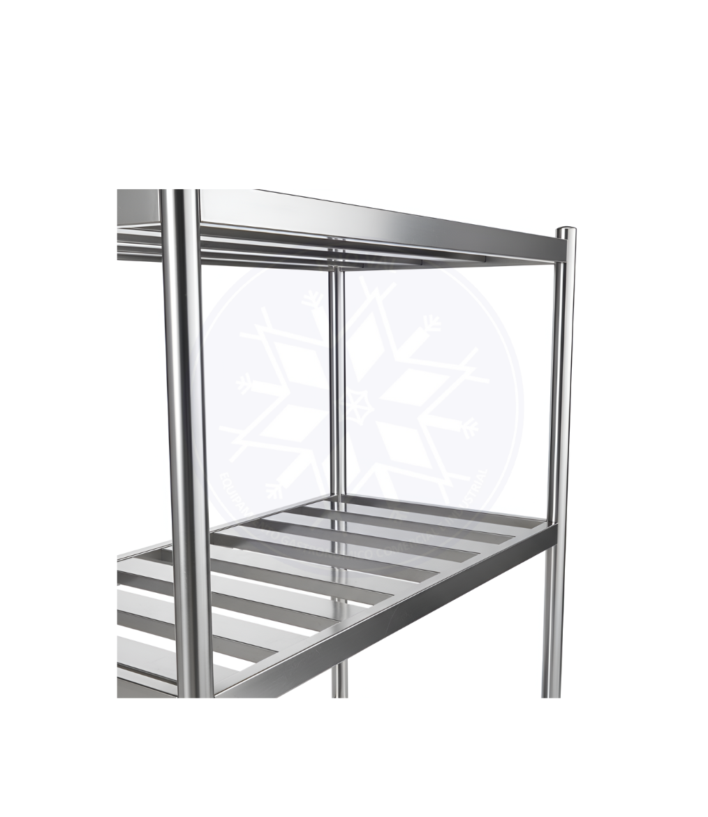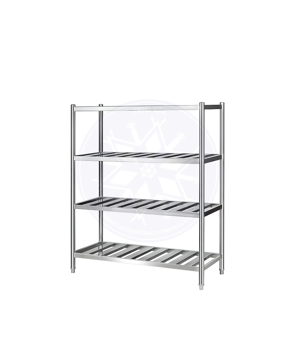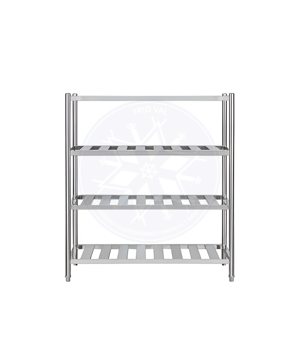 Estantería que, por su sistema, proporciona un fácil montaje sin el uso de herramientas especiales. Combina estética, durabilidad y resistencia. Su diseño permite el incremento en la circulación de aire, como también el espacio necesario para que pueda escurrir el agua de accesorios o útiles después del lavado. Posee una estructura firme, y a la vez liviana, que le permiten organizar sus utensilios y productos en cualquier lugar, incluso dentro de cámaras de frío.