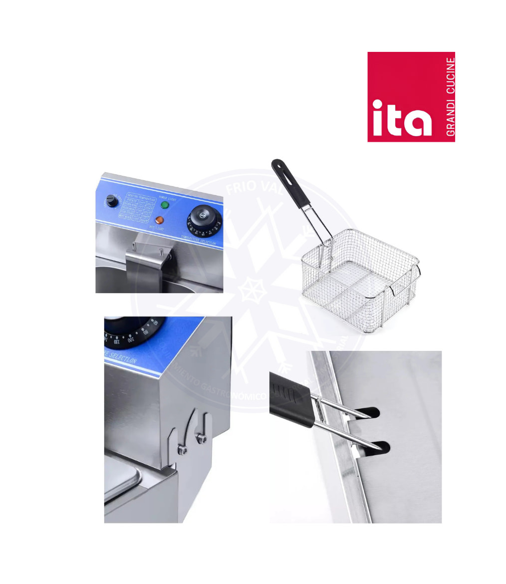 Freidora compacta y versátil, que puede ser ubicada en cualquier lugar de su cocina. Ideal para cocinas con espacios reducidos, como foodtrucks, y locales de comida rápida en general. Alcanza rápidamente altas temperaturas, lo que agiliza la producción y servicio de su local. Muy utilizadas en sangucherías, sushi bar, locales de papas fritas y empanadas. El equipo debe ser instalado en un soporte estable y no tener un desnivel para su correcto funcionamiento.