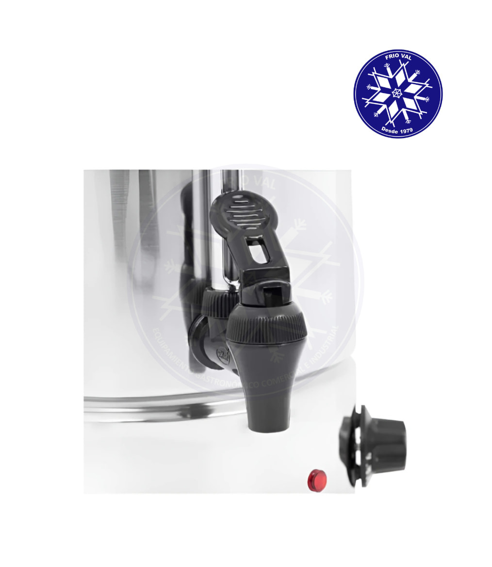 El dispensador de agua caliente profesional ofrece al usuario y los clientes un calentamiento constante. Permite la preparación de bebidas calientes como té, café y bebidas alcohólicas como vino caliente y ponche. Especialmente adecuado para hoteles, empresas de catering, restaurantes u otros locales.