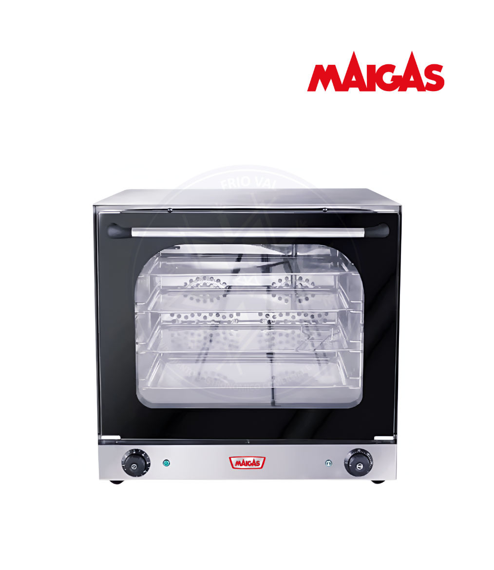 Equipado con dos turbinas de gran resistencia que garantizan una circulación de aire caliente continuo, este horno entrega una distribución uniforme del calor en toda su cámara de cocción. Cuenta con un control de temperatura ajustable, asegurando una cocción precisa. Su estructura en acero inoxidable, doble turbina y puertas de vidrio dual templado, ofrecen durabilidad y seguridad. Cuenta con 4 bandejas, iluminación interior y controles de tiempo y temperatura. Ideal para panaderías, pastelerías y cafeterías profesionales.