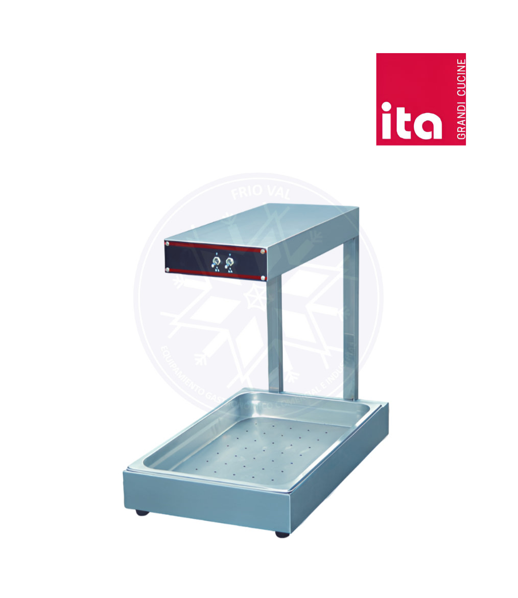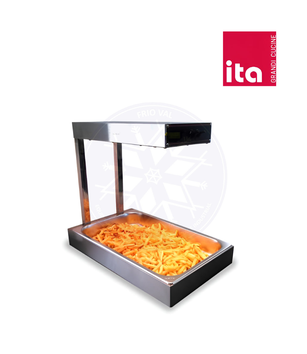 Mantenedor de papas fritas de sobremesa fabricada en acero inoxidable. Diseñado para mantener los alimentos fritos a temperatura ideal para el consumo. Utilizan luz infrarroja o luz halógena para generar calor, evitando que las papas se enfríen y pierdan su textura crocante. Muy utilizado en locales de comidas rápida, como grandes cadenas de comida, cocinerías, y foodtruck. Debido a su fácil uso y manejo, se vuelven indispensables en tu cocina y en la mantención de alimentos.
