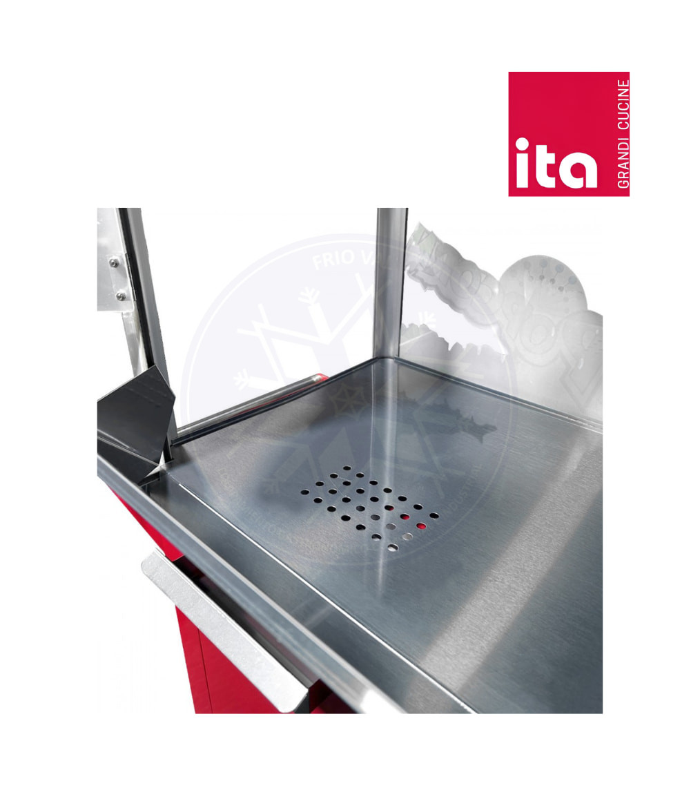 Fabricadora de cabritas, equipo diseñado de acero inoxidable, aleación de aluminio y vitrina de vidrios templados, con puertas abatibles, sistema de calefacción por infrarrojos, lo que proporciona un rendimiento excelente. El carro posee una estructura de acero pintado, bodega interior, puerta abatible, ruedas, bandeja lateral y mango de acero, y permite producir cabritas de manera segura, limpia, organizada y llamativa para potenciar su negocio.