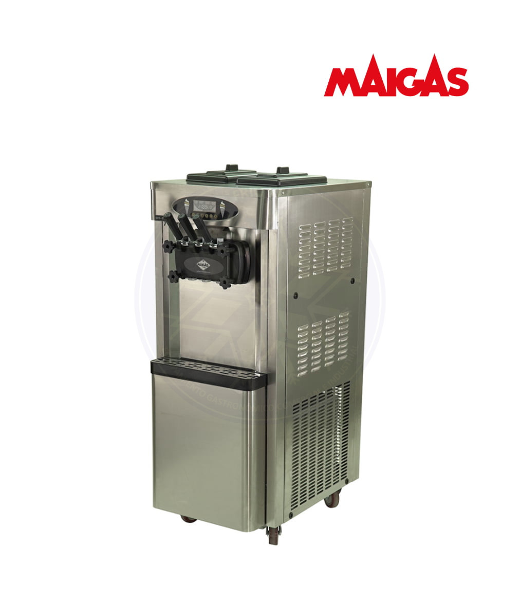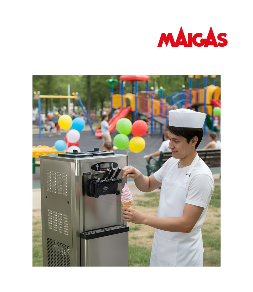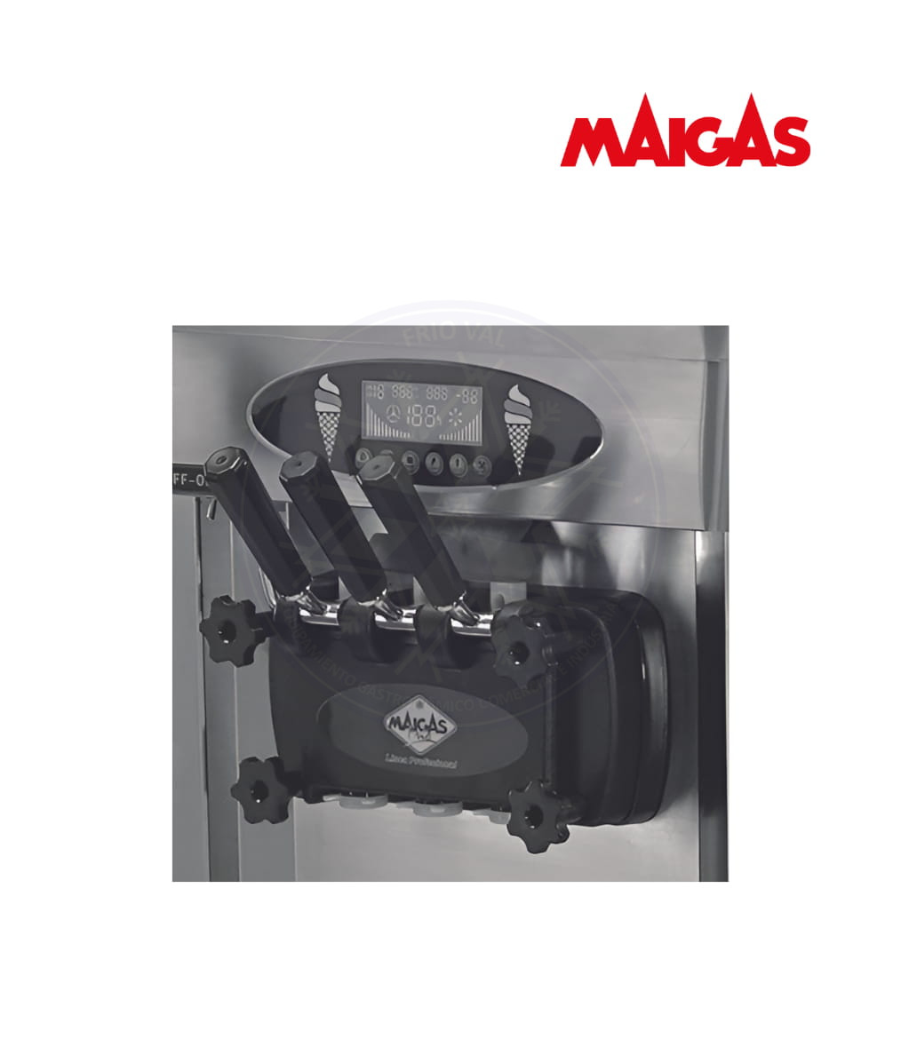 Máquina de Helados con una estructura sólida y resistente fabricada en acero inoxidable AISI-304. Posee una caja de engranajes de alta precisión y bajo ruido. Su sistema de alarma controlado por microcomputador con visualizador LED, facilita su lectura. Incorpora 3 manillas abatibles que permiten dos sabores simples y uno mixto. Al tener un control automático de temperatura, permite dar mayor suavidad o firmeza al helado preparado. Una excelente inversión para hacer crecer su negocio y sorprender en verano.