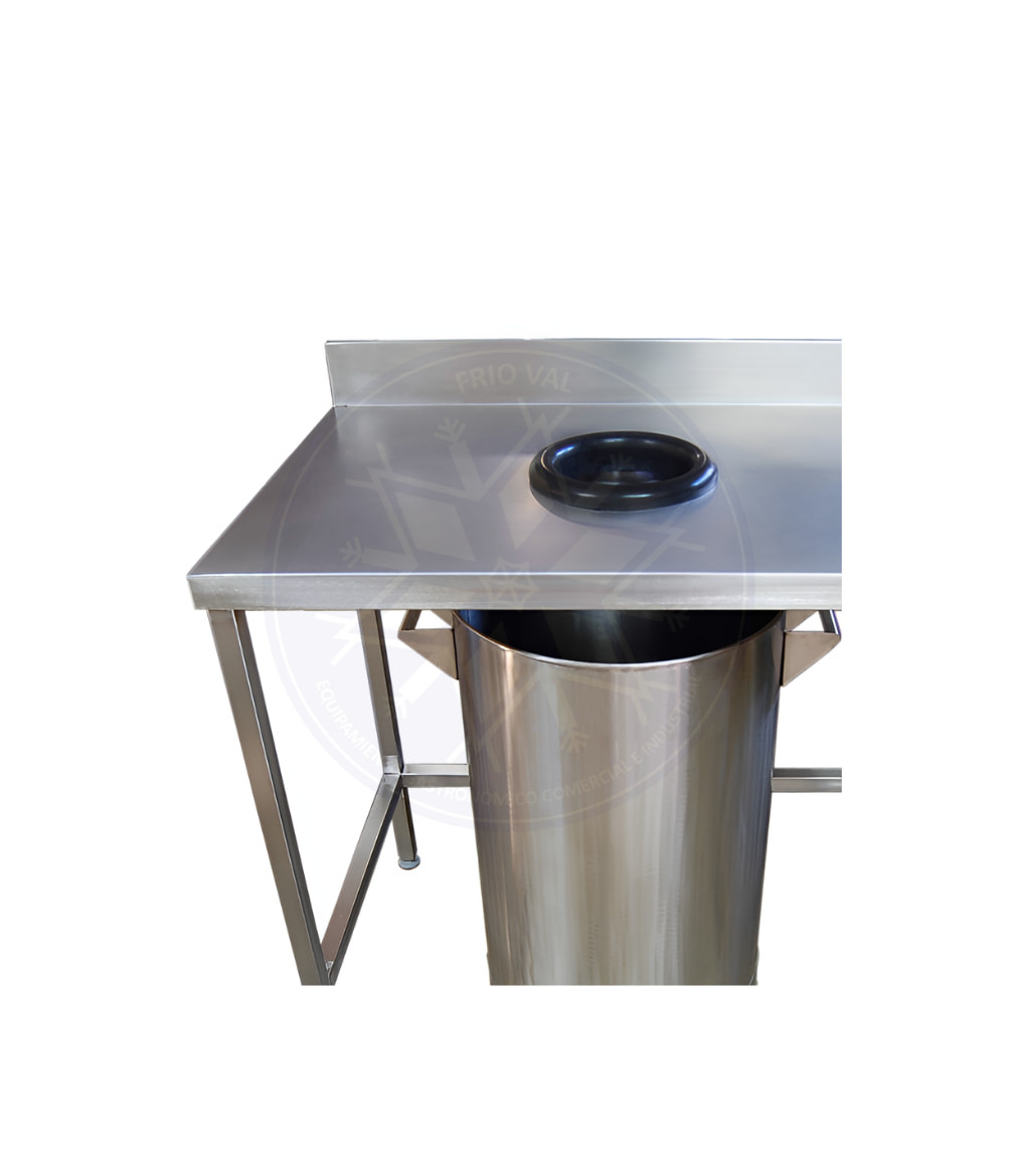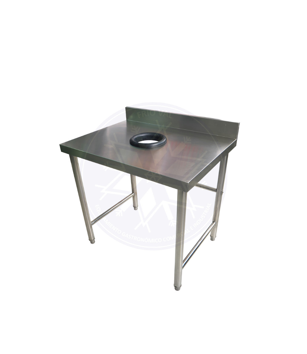 Los mesones de desconche son ideales para agilizar y mantener la limpieza e higiene en los entornos gastronómicos. Son mesones de acero con un orificio en el centro, para eliminar fácilmente desechos y desperdicios, por medio de la instalación de una bolsa, o bien, un basurero debajo del mesón. Son versátiles, resistentes, y necesarios para poder cumplir las normas sanitarias que se exigen en el rubro gastronómico.