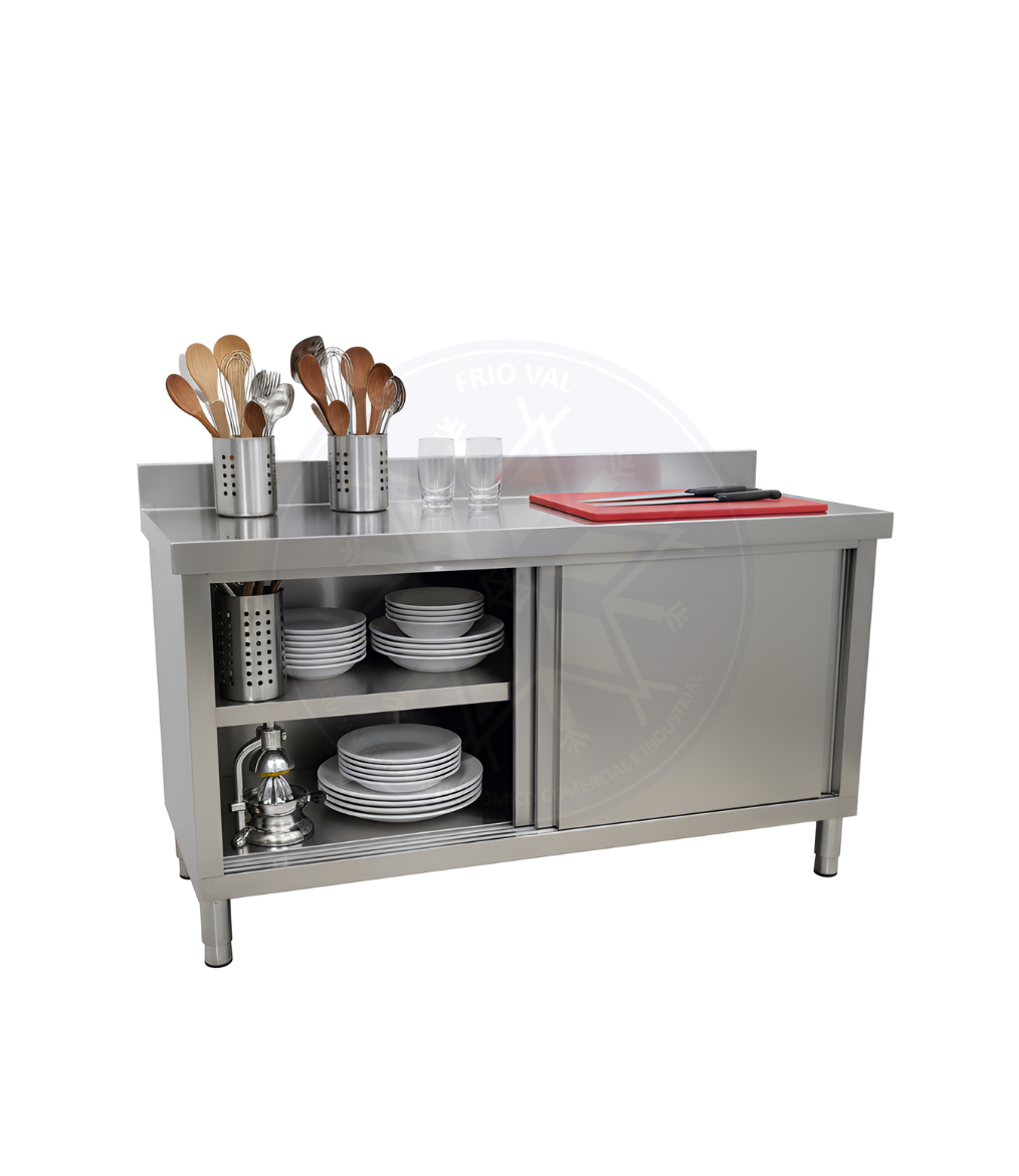 El acero inoxidable es el material más utilizado en cocinas profesionales y en otras industrias para maximizar la higiene en los procesos productivos, como también es un requisito establecido por las Autoridades Sanitarias. Las cubiertas de acero inoxidable facilitan en gran medida la elaboración de alimentos. Los mesones murales contemplan una viñeta trasera de 10 cm de altura que impide el escurrimiento hacia el muro sobre el cual se apoyan.