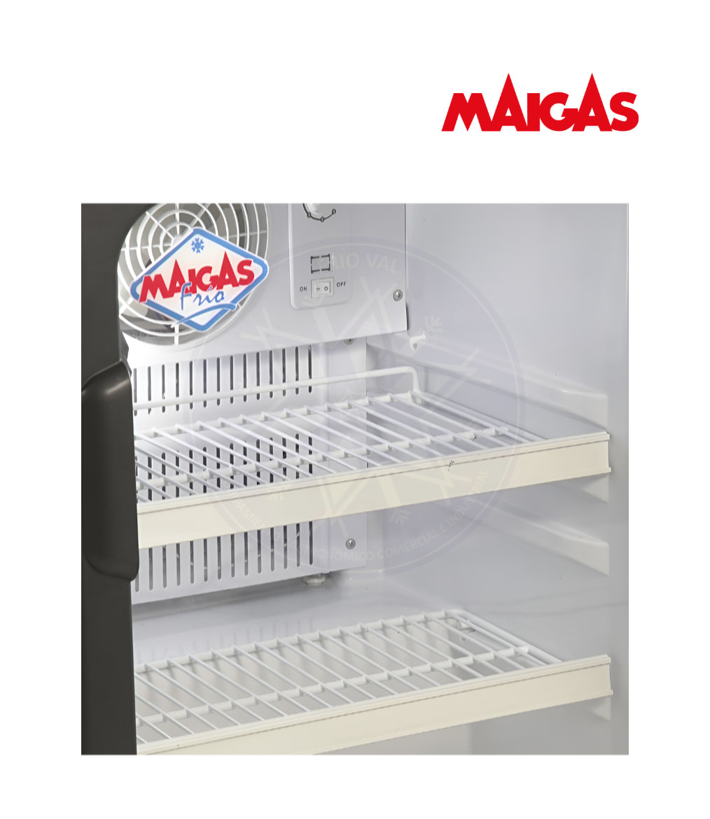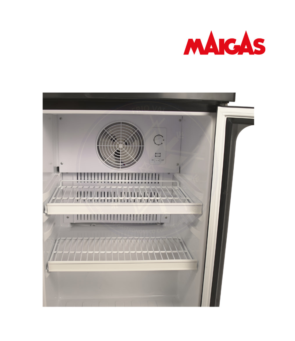 Cuenta con un sistema de enfriamiento cíclico con control de temperatura por termostato, permitiendo un rango de 0 a 10 grados. Su puerta abatible en termopanel con llave asegura una óptima conservación y seguridad. Incluye dos parrillas de fierro plastificado regulables para una organización flexible y eficiente. La iluminación interior facilita la visibilidad y el acceso a los productos almacenados. Ideal para mantener bebidas y alimentos a la temperatura perfecta.