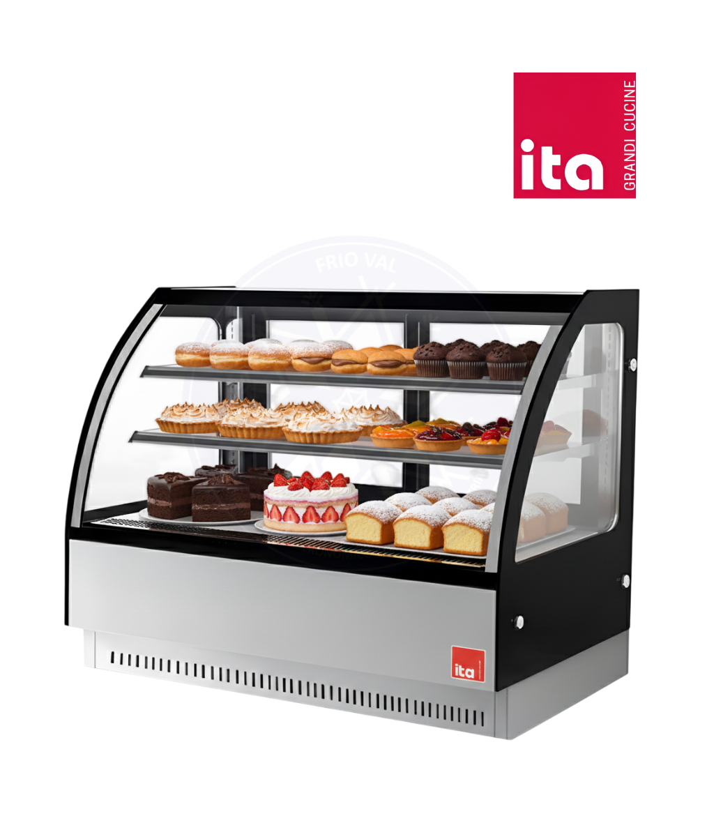 La vitrina pastelera curva Ita ofrece un formato elegante y compacto, ideal para locales con espacios reducidos sin perder calidad en la refrigeración ni presentación visual. Esta vitrina es perfecta para pastelerías, cafeterías, minimarket y negocios que desean mantener sus productos de repostería en excelente calidad, temperatura y exhibición.