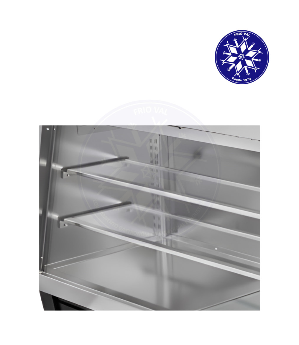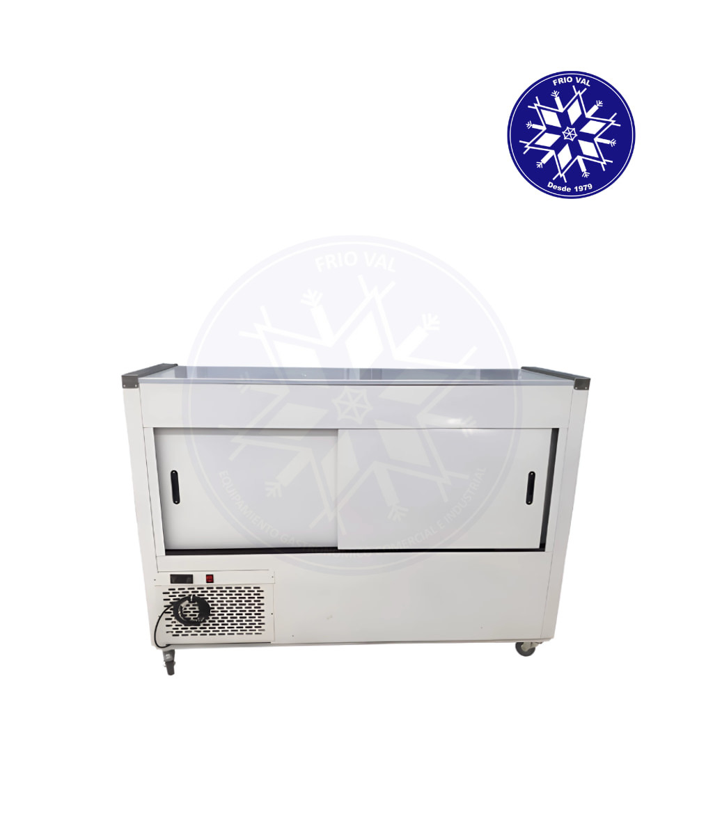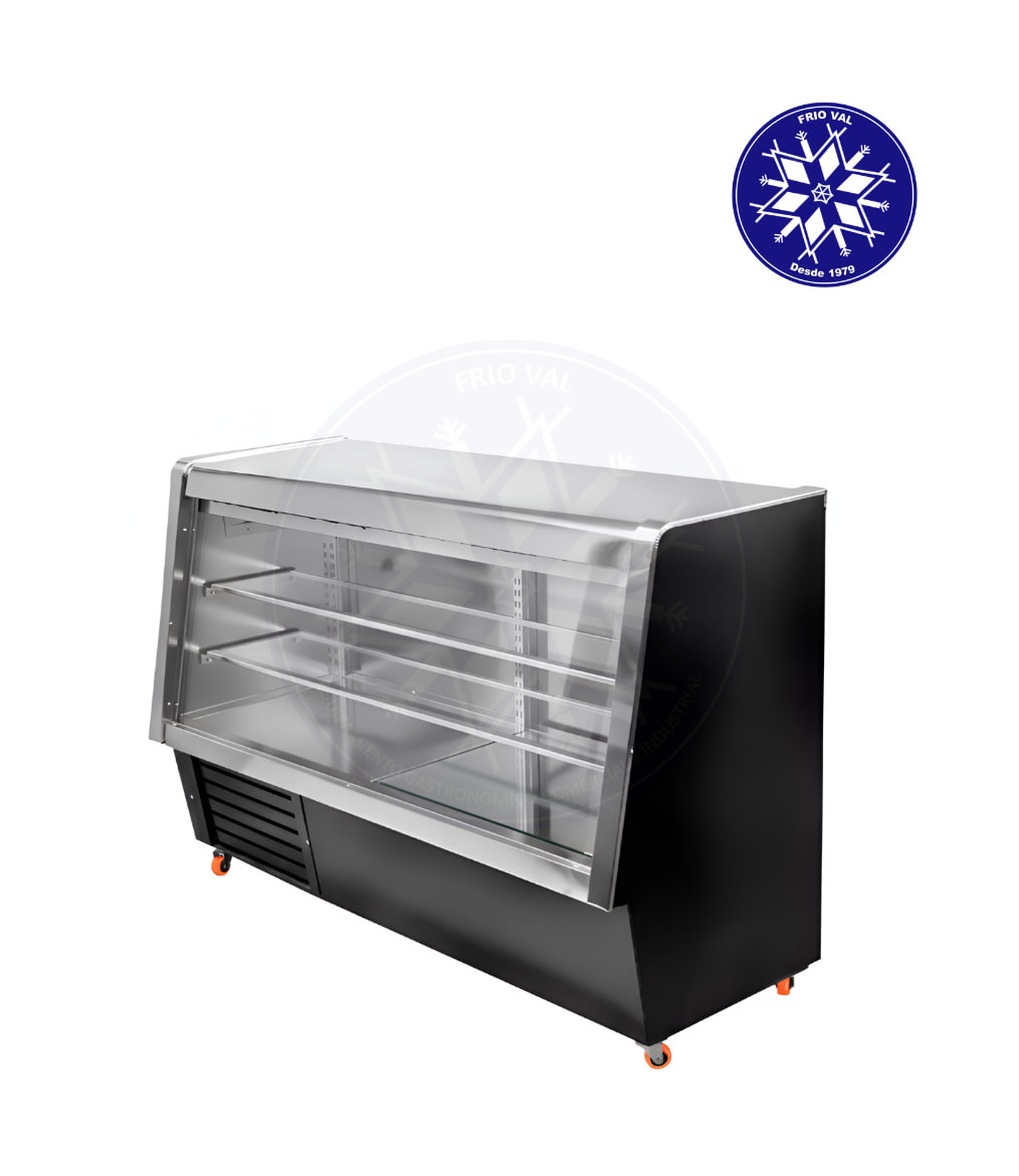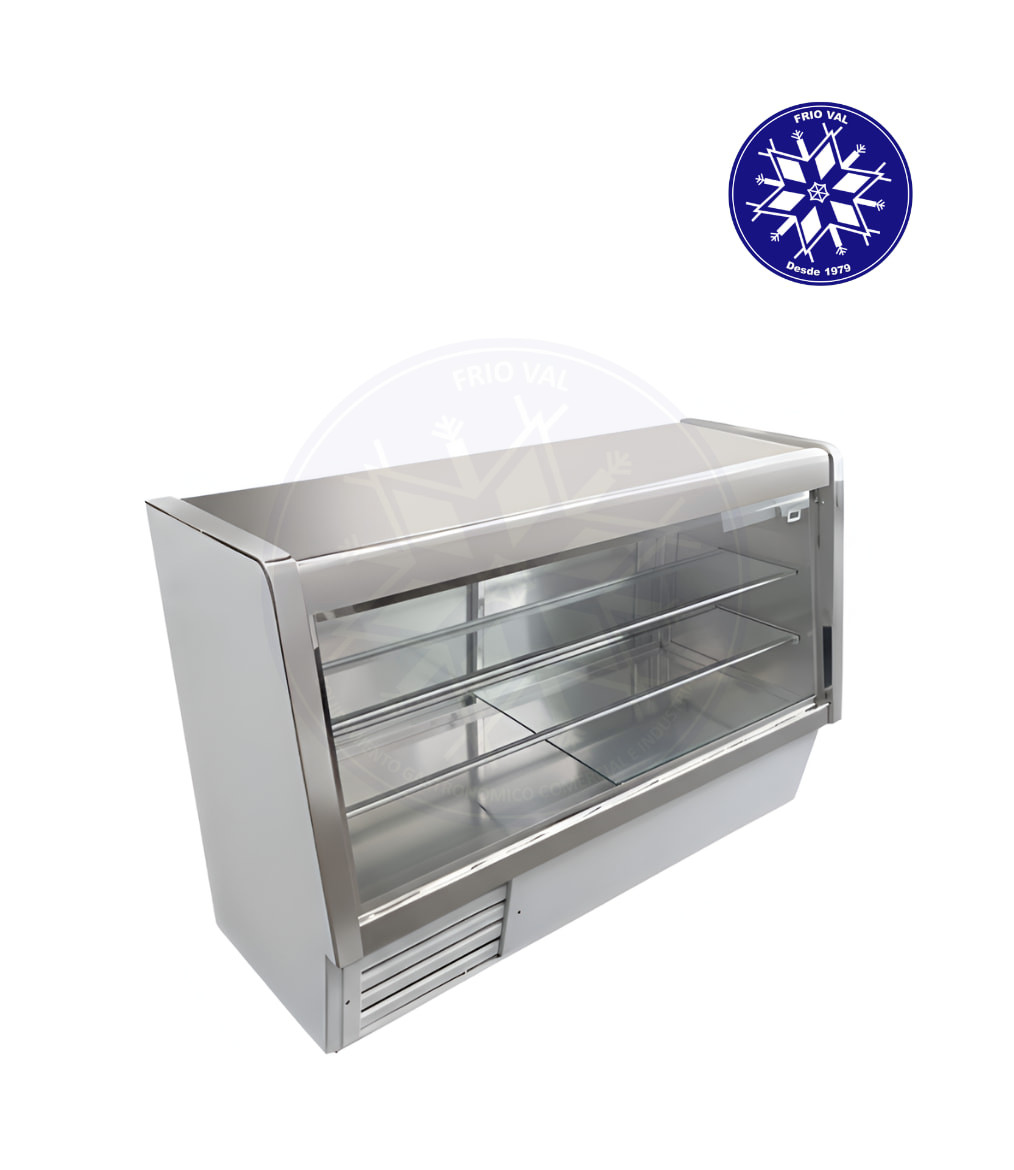 Equipo de refrigeración diseñado para mantener alimentos y bebidas a temperaturas frías, mientras se exhiben de manera atractiva para sus clientes. Posee un mesón de acero para atender y comerciar con sus clientes, al tiempo que exhibe los productos. Al poseer un sistema de frío estático, es perfecta para mantener sus productos frescos. Ideal para la exhibición de lácteos, cecinas, quesos, jugos y bebidas, y ciertos productos de pastelería. De fácil uso y mantenimiento.