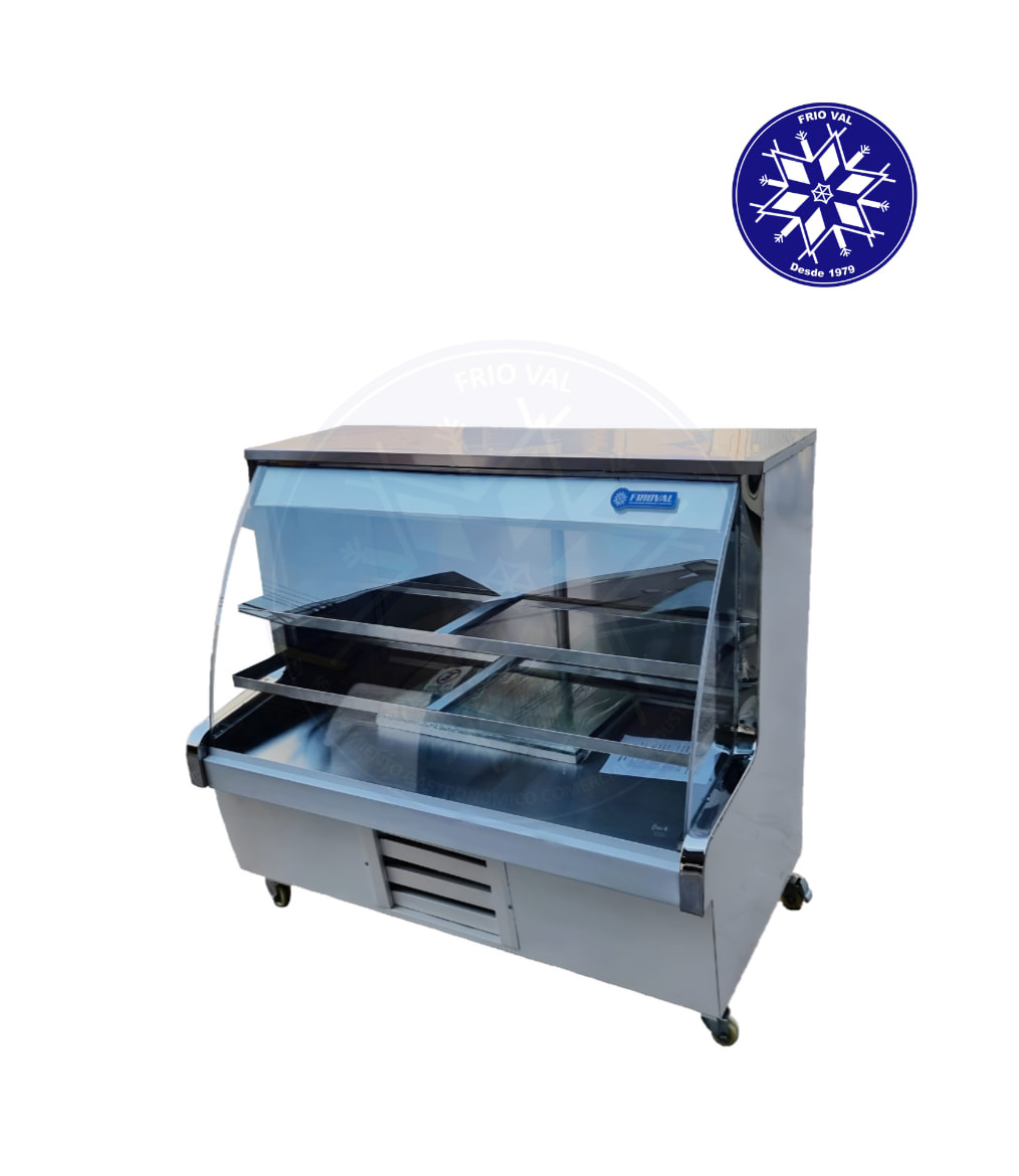 Equipo de refrigeración diseñado para mantener alimentos y bebidas a temperaturas frías, mientras se exhiben de manera atractiva para sus clientes. Posee un mesón de acero para atender y comerciar con sus clientes, al tiempo que exhibe los productos. Debido a su vidrio curvo, ofrece toda la prestancia y elegancia de una vitrina pastelera. Al poseer un sistema de frío estático, es perfecta para mantener sus productos frescos. Ideal para la exhibición de lácteos, cecinas, quesos, jugos y bebidas, y ciertos productos de pastelería. De fácil uso y mantenimiento.